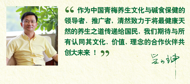 吳小坤先生始終堅持傳承國粹養生文化的價值理念,致力于在中國推廣青梅健康養生理念,并歷時數年精心打造專注青梅健康食品的清然品牌,受到市場和消費者的廣泛歡迎,被譽為中國青梅健康養生第一人。